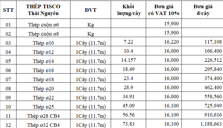 >>> Có thể bạn quan tâm: bảng đơn giá sắt thép xây dựng mới nhất hôm nay