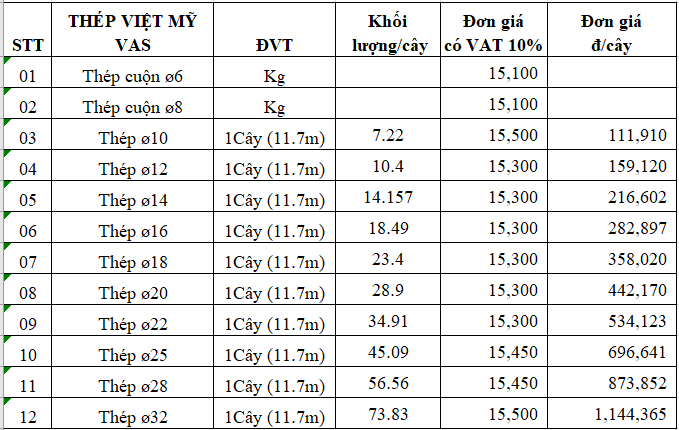 Bảng giá thép xây dựng Việt Nhật mới nhất hôm nay