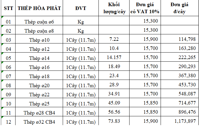 Giá thép Hoà Phát 2026 (tham khảo)