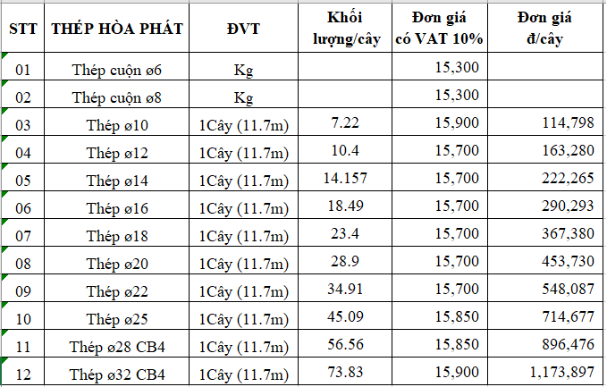 Bên cạnh đó, chúng tôi cũng gửi đến quý khách hàng bảng giá thép hôm nay mới nhất để quý khách hàng có thể tham khảo.