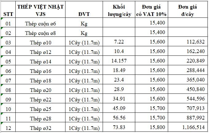 Có 2 loại thép chính: thép cuộn Việt Nhật và thép thanh vằn Việt Nhật